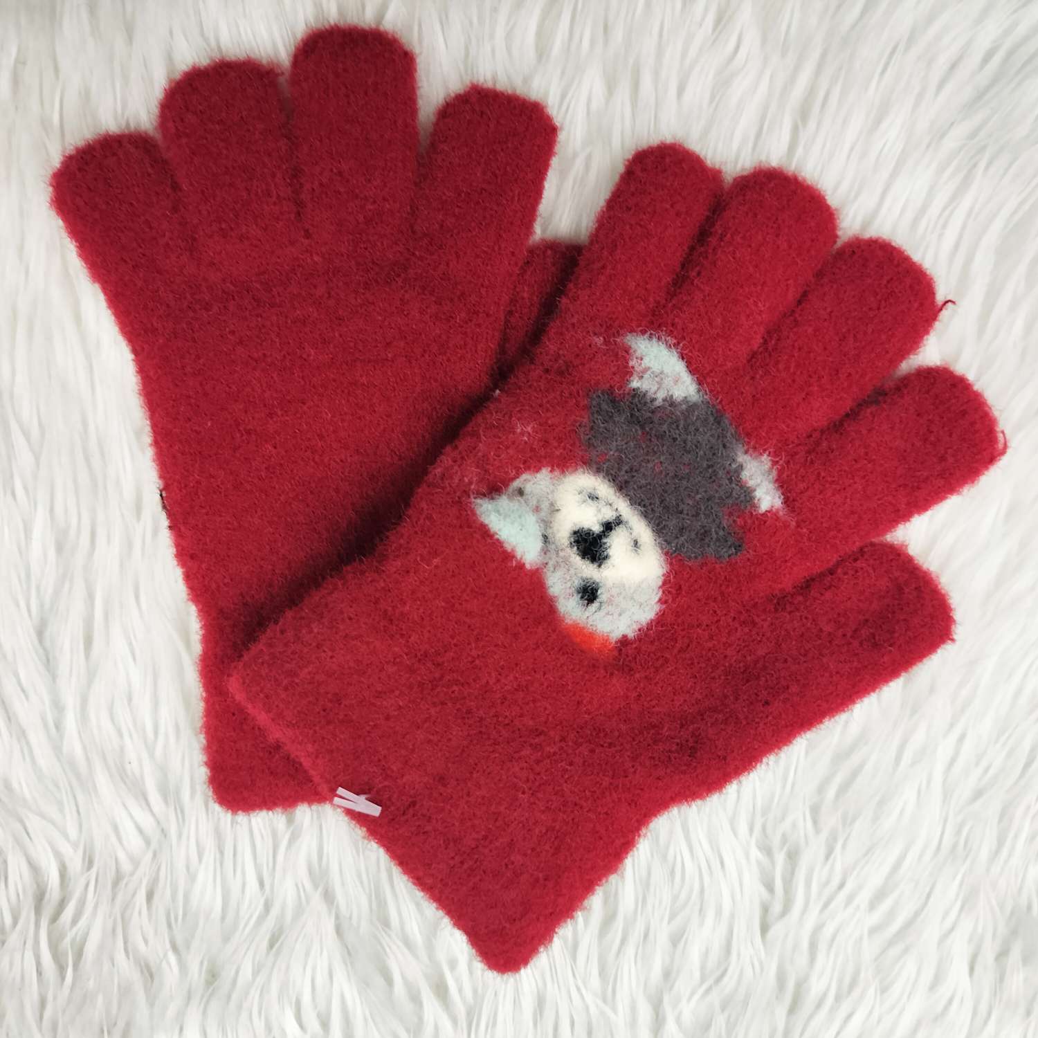 Children's Mink Cartoon Panda Picture Cold Full Finger Gloves Warm Gloves Outdoor Spring And Autumn Knitted Gloves